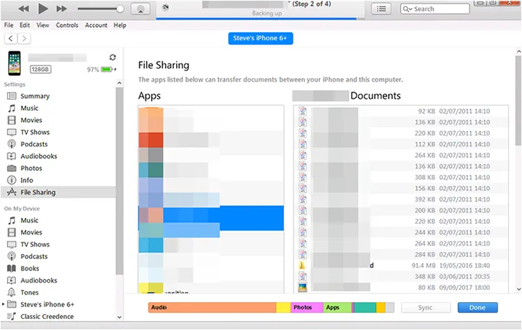 Step 3: Click on the iPhone icon that appears in iTunes. In the sidebar, navigate to "File Sharing". A list of apps on your iPhone that support file sharing will appear. Select the app containing the files you want to transfer.