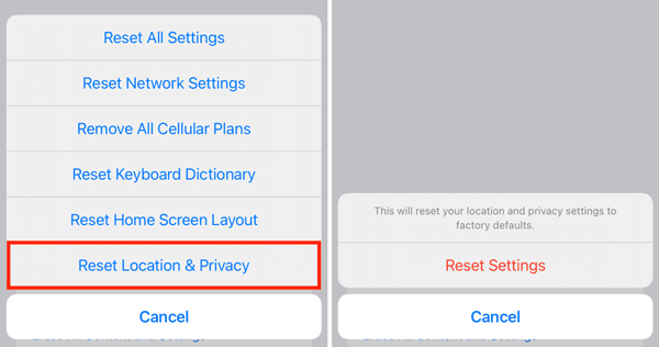 - Click "Reset" > "Reset Location & Privacy" > "Reset Settings".