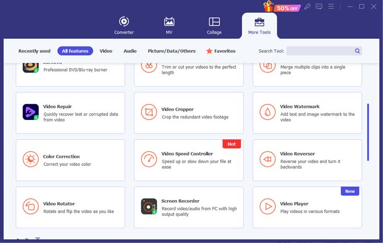 To access Video Speed Controller, launch the above software and navigate to the "More Tools" tab. Find "Video Speed Controller" and open it.